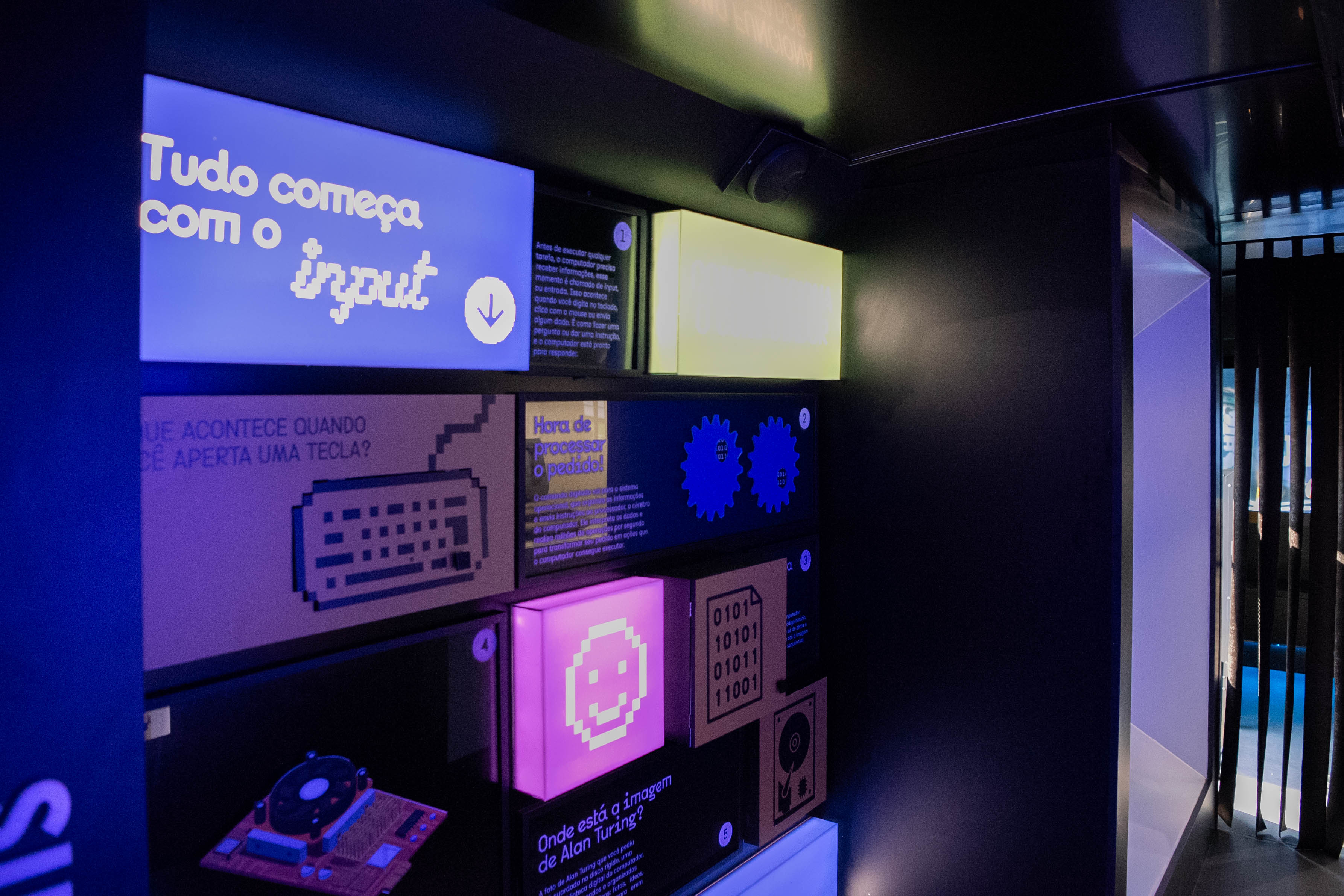 Para que todos saibam como um computador transforma eletricidade em dados, o painel "Como funciona o computador" visa levar ao visitante o conhecimento técnico sobre o dispositivo.