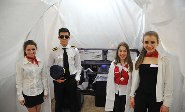 Teremos uma cabine de controle, que apresentará os erros que podem ocorrer durante os voos, o que ocorre com o avião em momentos de turbulência, mostrando como funciona o radar e explicando situações de riscos entre colisões de aeronaves. Mostraremos o ambulatório que presta atendimento médico aos funcionários do aeroporto. Criaremos um modelo de avião que será apresentado pelo "piloto", explicando como o voo vai proceder, como é feita a comunicação entre a torre de comando e os funcionários de bordo e como proceder caso ocorra algum tipo de problema durante a viagem".