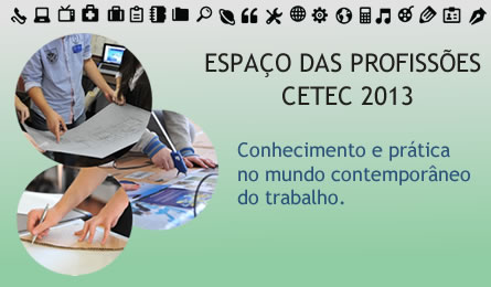 ESPAÇO DAS PROFISSÕES 2013 - Conhecimento e prática no mundo contemporâneo do trabalho. Dias 22 e 23 de agosto, no CETEC.