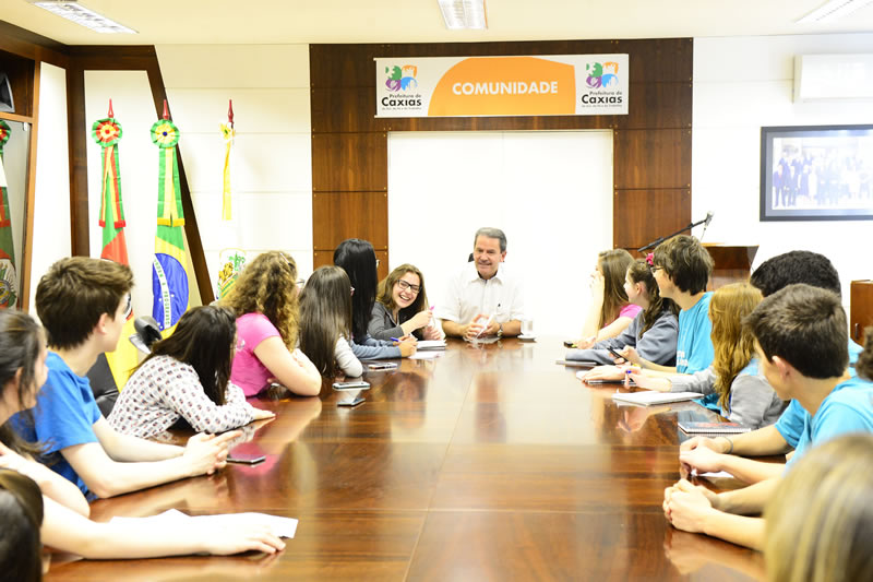 Na Prefeitura, 30 alunos e as professoras Deise e Liliane foram recebidos pelo prefeito Alceu Barbosa Velho, no Salão Nobre do Centro Administrativo. Os estudantes conversaram com o prefeito sobre cultura, impostos, as obras do SIM Caxias, a Lei de Poluição Visual no centro da cidade e os desafios do cargo de prefeito. "É muito legal receber vocês aqui. Posso dizer que não é fácil ser prefeito. Os desafios são grandes e diários. Temos muito trabalho e muitas responsabilidades", explicou o prefeito.
