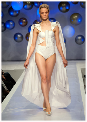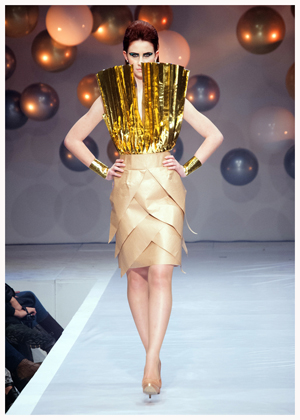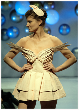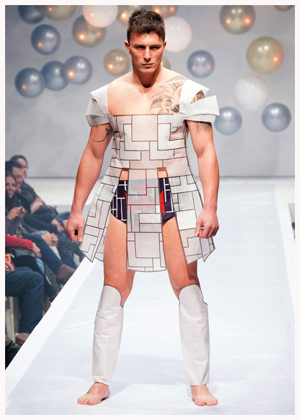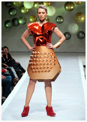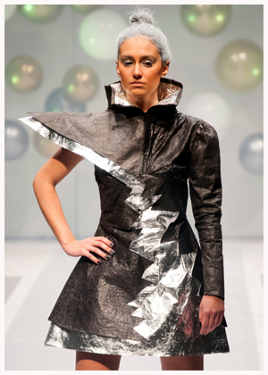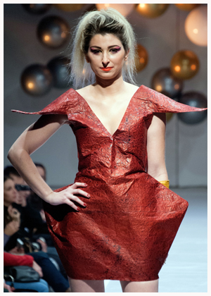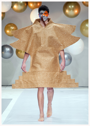Alunos da disciplina Laboratório de Criatividade apresentam peças inovadoras confeccionadas tendo como principal matéria-prima entretela colante e papel.