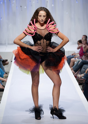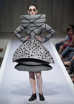 Desfile do qual participam 40 alunos da disciplina Laboratório de Criatividade, ministrada pelo professor e artista plástico, Sérgio Lopes. As criações são autorais e resultam do exercício de experimentação de materiais, core volumes, de forma totalmente lúdica, de modo a incentivar o aluno para ousar e inovar.