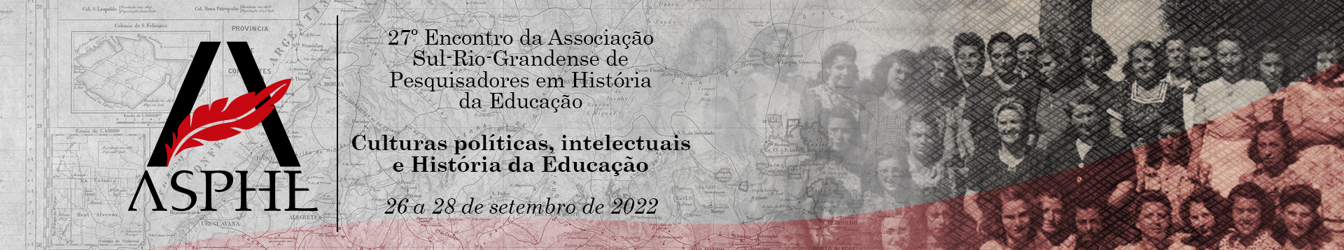 O 27º Encontro da Associação Sul-Rio-Grandense de Pesquisadores em História da Educação (ASPHE) tem como objetivo a discussão das culturas políticas, os intelectuais e as relações com a História da Educação. Nesse sentido, a história da educação associa-se ao processo histórico de desenvolvimento e seus aspectos políticos, sociais e culturais percebidos nas estratégias e táticas elaboradas pelos sujeitos, nas práticas, na disseminação de valores e normas estabelecidas pelos grupos sociais nas suas mais distintas experiências educativas.