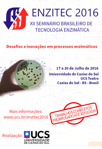Convidamos a comunidade acadêmica e o setor empresarial a participarem do XII Seminário Brasileiro de Tecnologia Enzimática - ENZITEC 2016 que ocorrerá em Caxias do Sul, RS, no período de 17 a 20 de julho de 2016.