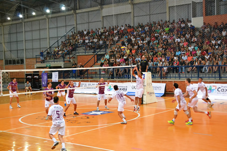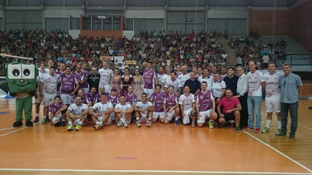 Cerca de 1,5 mil pessoas compareceram ao Ginásio Poliesportivo da UCS no final da tarde de domingo, dia 29, para conferir o Desafio de Vôlei Amigos do Roberto Minuzzi Jr. x Amigos do Gustavo Endres, partida que demarcou o encerramento da carreira dos dois atletas, vencedores de diversos títulos de clubes e com a Seleção Brasileira. O evento, promovido em conjunto pela UCS, Prefeitura e Festa da Uva, teve a renda de R$ 5.965 revertida ao projeto assistencial Mão Amiga, coordenado pelo frei capuchinho Jaime Bettega.