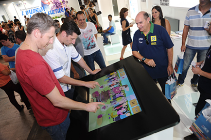 No estande, os jogadores puderam conferir o jogo da Olimpíada Colonial, produzido por acadêmicos e professores da Universidade, especialmente para a 31ª Festa da Uva. No game, o personagem Radicci, criado pelo cartunista caxiense Iotti, simula a prova de amassar as uvas com os pés. Se nas quadras, os dois jogadores estarão em lados opostos, no jogo virtual, eles compartilharam a missão de encher o garrafão com o suco da fruta, por meio de comandos na tela. A brincadeira garantiu a descontração antes do aguardado confronto.