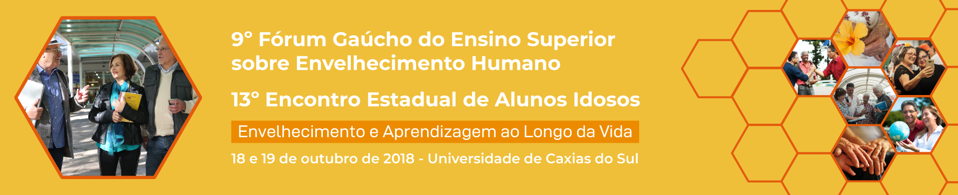 O Fórum Gaúcho do Ensino Superior sobre Envelhecimento Humano foi criado em 2000 e atualmente é formado por 14 universidades do RS, sendo realizado a cada dois anos na sede da Instituição que o coordena. No período de 2017 e 2018, a coordenação está sob responsabilidade da Universidade de Caxias do Sul, que, para finalizar esta fase, organizará nos dias 18 e 19 de outubro de 2018, um evento de cunho científico, aberto a especialistas, profissionais da área, idosos e acadêmicos, com o objetivo de articular estudos e ações de ensino, pesquisa e extensão que favoreçam o envelhecimento humano ativo e saudável, respeitando a diversidade e promovendo a inclusão.
