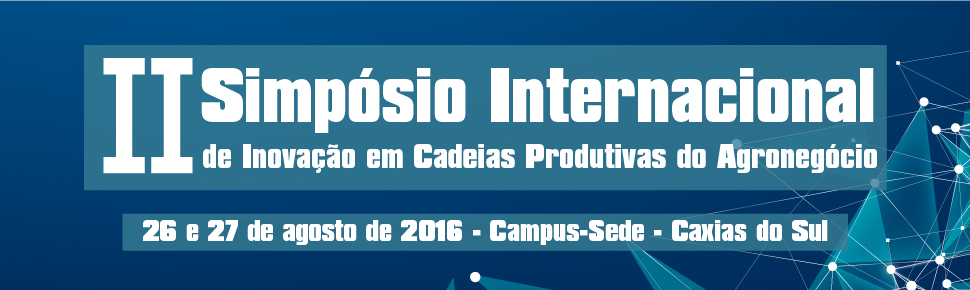 A Universidade de Caxias do Sul através do Programa de Pós-Graduação em Administração visando disseminar a produção científica, técnica, tecnológica e descobrir novas aptidões no campo da pesquisa acadêmica, promove a segunda edição do Simpósio Internacional de Inovação em Cadeias do Agronegócio que realizar-se-á nos dias 26 e 27 de agosto de 2016, no Bloco J, da Cidade Universitária de Caxias do Sul em Caxias do Sul/Rio Grande do Sul.