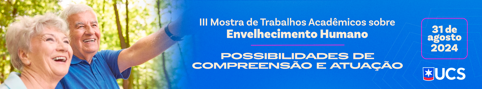 Diante desse cenário, o Programa UCS Sênior promove a III Mostra Acadêmica sobre Envelhecimento Humano: possibilidades de compreensão e atuação, que tem como objetivo sensibilizar a comunidade acadêmica para a importância de estudar, produzir e socializar conhecimento sobre esta temática, incentivando que discentes, das diferentes áreas de conhecimento, contribuam para novos avanços.