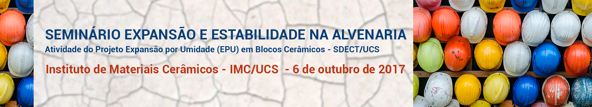 8h30min - APRESENTAÇÃO DO PROJETO EXPANSÃO POR UMIDADE (EPU) EM BLOCOS CERÂMICOS UCS/SDECT Robinson Carlos Dudley Cruz - Engenheiro mecânico pela Universidade Federal de Santa