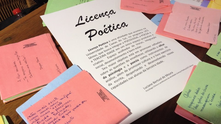 A proposta é chamar a a atenção dos frequentadores da Feira através da disseminação da poesia. De uma forma simpática, as alunas do Programa UCS Sênior abordam o visitante da Feira, presenteando-o com um poema ou mensagens poéticas escritas pelas próprias alunas em guardanapos coloridos.