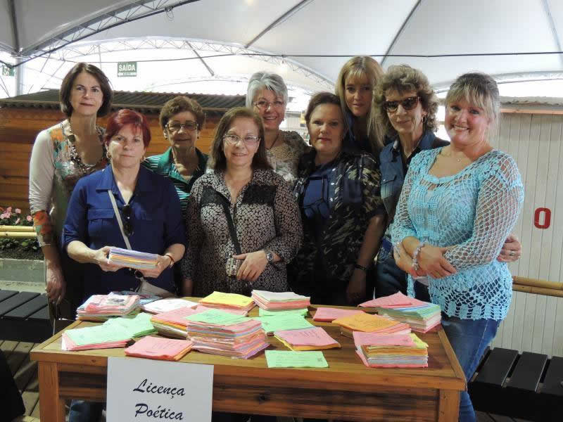 As integrantes da atividade "Licença Poética", coordenada pela professora Luciane Bertuol, participam da Feira do Livro de Caxias do Sul, com a ação "Poesia de Guardanapo". A primeira abordagem foi na tarde de 8 de outubro e a próxima será no dia 16.