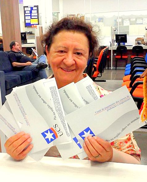 A aluna Maria de Jesus Vanzin, 67, já garantiu sua vaga nas atividades do Programa e ela não se matriculou apenas em uma....Ela se matriculou logo em CINCO! "Quero vir todos os dias para a UCS", assim Maria de Jesus justificou sua matrícula nas seguintes atividades: Uso prático de tablets e smartphones; Informática avançada; Movimento mix; Ginástica recreativa; e Dança e expressão corporal.
