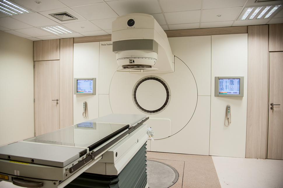 No serviço de radioterapia da UNACON, os equipamentos são de alta complexidade e, por isso, o prédio conta com uma estrutura física específica. O Acelerador Linear é um equipamento que produz feixes de raios X e elétrons com alta energia, que são utilizados para tratamento de vários tipos de tumores benignos e malignos, e também de algumas lesões de pele. O aparelho foi instalado em uma sala com paredes de concreto de alta densidade e funciona como um tubo de raios X convencional, porém produz radiações com energia mil vezes superior.