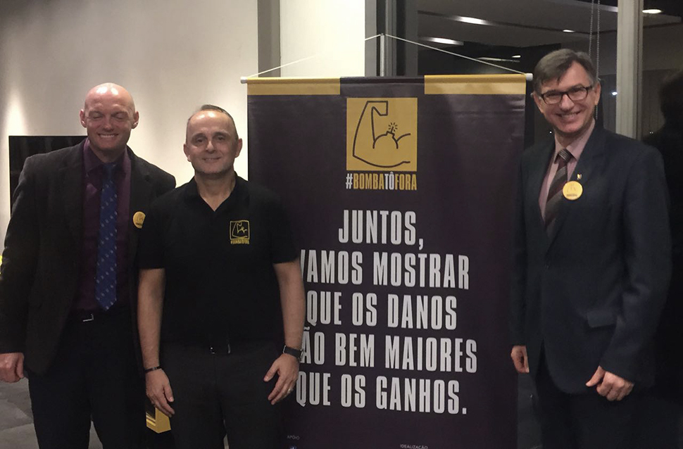 Nesta segunda-feira, 9 de abril, a Universidade de Caxias do Sul esteve presente no evento de pré-lançamento do projeto #BombaTôFora, realizado em São Paulo, destinado a apoiadores e parceiros da iniciativa. Participaram o reitor da UCS, professor Evaldo Kuiava, e os professores Ricardo Rodrigo Rech, coordenador da graduação em Educação Física e do Instituto de Medicina do Esporte da Instituição, e da área de Educação Física no projeto, e Rosa Maria Rahmi Garcia, do curso de Medicina.