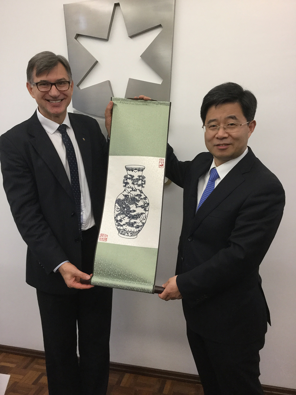 O reitor da UCS, professor Evaldo Antonio Kuiava, recebeu uma comitiva da China na tarde desta sexta-feira, dia 6 de abril. A delegação da cidade de Changzhou passou por Caxias do Sul e realizou um roteiro de visitas. Estiveram no Brasil representantes do governo municipal em áreas como educação, turismo, saúde, relações exteriores, negócios e investimentos.