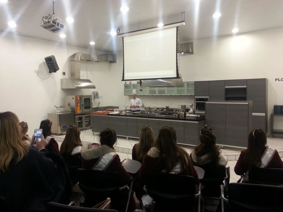 O grupo recebeu informações sobre a atuação da Universidade como instituição de Ensino Superior comunitária e participou de um workshop sobre a gastronomia italiana da região do Vêneto, seguido de um jantar.