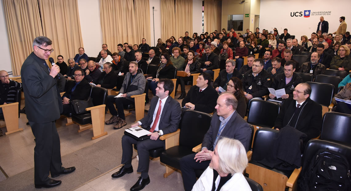 O reitor Evaldo Kuiava também recordou sua história na UCS, iniciada enquanto aluno de Filosofia, durante três anos, que se somam a outros 25 anos de atuação na docência e gestão universitária. Ele compartilhou detalhes sobre a história da UCS e apresentou seus principios filosóficos, diretrizes e estrutura organizacional. "A UCS, em 51 anos já formou mais de 100 mil pessoas, é a maior do estado e uma das maiores do país no âmbito das universidades comunitárias". Para o reitor, "atuar em uma Instituição que se volta para a comunidade é gratificante, motivador e acredito que esse é o modelo para o futuro das organizações, que ajudam na formação de uma sociedade melhor". Sem deixar de evidenciar a importância de uma formação técnica e científica, o reitor destacou, acima de tudo, "a formação humana para atender às demandas da vida".