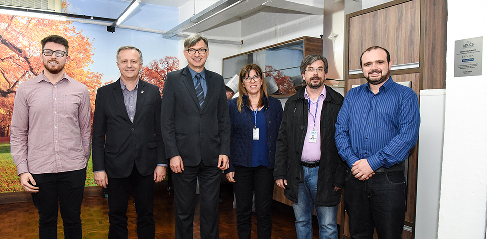 O reitor Evaldo Antonio participou da cerimônia de inauguração do Espaço Gourmet da Associação dos Docentes da Universidade de Caxias do Sul (ADUCS), realizada nesta quarta-feira, 26 de setembro, com a participação de associados e convidados. O espaço foi constituído graças à parceria de longa data com as empresas Evviva, do Grupo Bertolini, e Tramontina, que assinam o projeto do espaço. "A sede da ADUCS constitui-se em um espaço de convívio agradável que valoriza os professores", definiu o reitor, enaltecendo, ainda, a pró-atividade no estabelecimento de parcerias com empresas de relevância no cenário regional e nacional.