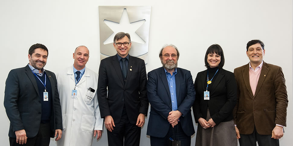 O neurocientista Miguel Nicolelis, considerado o principal cientista brasileiro e um dos maiores pesquisadores mundiais da atualidade, foi recebido pelo reitor Evaldo Antonio Kuiava na tarde desta segunda, 14 de agosto. O pesquisador da Duke University está em Caxias do Sul para proferir a palestra de abertura do IV Seminário de Tecnologia, Inovação e Desenvolvimento Social, a partir das 20h, no UCS Teatro. No encontro, promovido pela Área de Ciências Exatas e Engenharias da UCS, Nicolelis vai falar sobre a interface cérebro-máquina, com base em seu trabalho de pesquisa com exoesqueletos que buscam estimular a reparação sensorial e motor de pacientes com deficiência física.