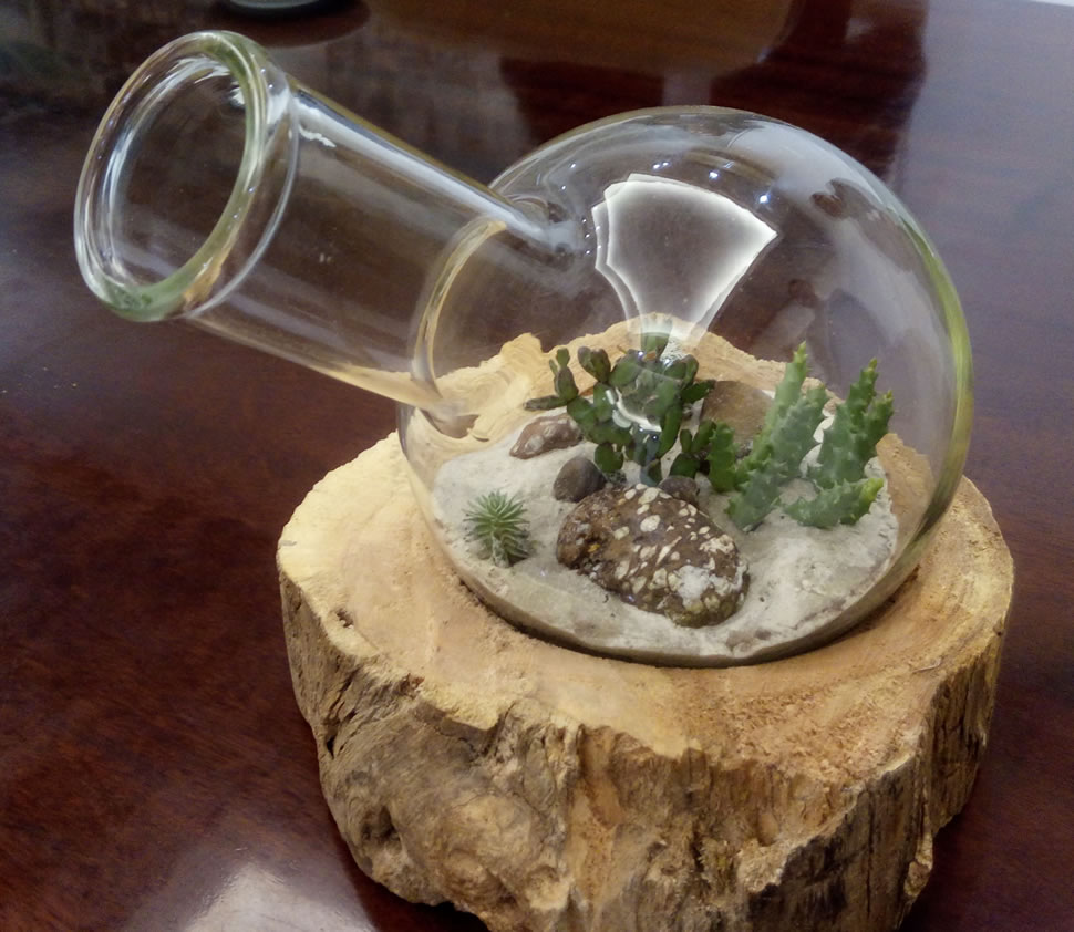 O reitor foi presenteado com um dos terrários produzidos pelo grupo.