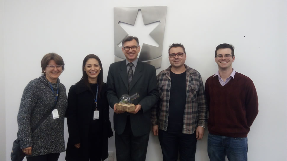 O reitor Evaldo Kuiava recebeu na tarde desta segunda-feira a visita dos professores do Área de Conhecimento das Ciências Exatas e Engenharias, Camila Baldasso, Rejane Rech e Tomas Polidoro, que participam do trabalho voluntário: Jardins do Bem. Com a colaboração do biológo Marcos Grizzon, egresso da UCS, eles fazem e comercializam terrários, miniaturas de jardins dispostos em recipientes de vidro. Os recursos obtidos com a comercialização desses microecossistemas são revertidos para projetos sociais que envolvem a causa animal.