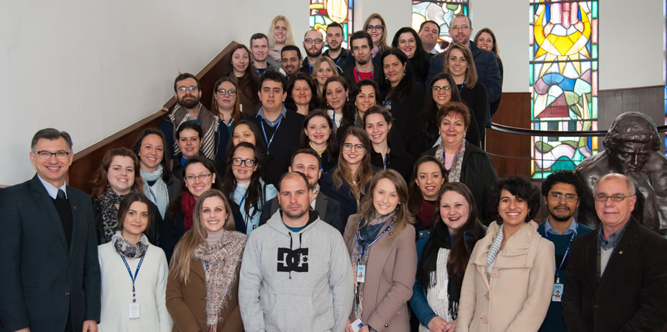 Na oportunidade, cerca de 60 colaboradores da UCS foram recepcionados pelo reitor Evaldo Kuiava, pelo chefe de Gabinete Gelson Leonardo Rech e pelo gerente de Recursos Humanos, Nilton Kleber Nicolodi. O encontro tem, entre seus objetivos, construir uma relação de sucesso entre a Instituição e os que nela trabalham, aliar as diretrizes estratégicas da Universidade e promover a integração entre os profissionais e a Reitoria.