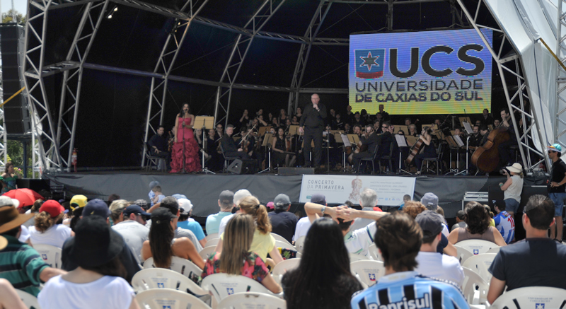 O público de Bento Gonçalves prestigiou na manhã de domingo, 30 de novembro, o concerto especial com a Orquestra Sinfônica da UCS, no Campus Universitário da Região dos Vinhedos. A apresentação teve como temática a Música Popular Brasileira e contou com a participação do Coro da Universidade e da cantora Ana Lonardi.