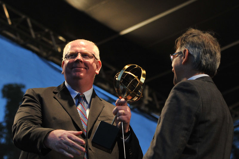 O maestro Manfredo Schmiedt representou a Orquestra Sinfônica da UCS, na noite de ontem (4), em Porto Alegre, ao receber o Prêmio Líderes & Vencedores, uma iniciativa da Federação das Associações Comerciais e de Serviços do Rio Grande do Sul - Federasul e Assembleia Legislativa do Rio Grande do Sul.