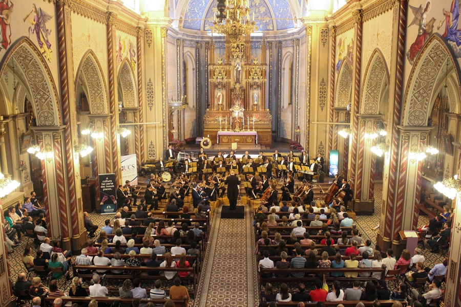 O reitor Evaldo Kuiava participou da abertura do Concerto Especial da Orquestra Sinfônica e do Coro da UCS, em comemoração aos 80 anos da Diocese de Caxias do Sul, realizado na noite desta quinta-feira (11) na Catedral Santa Teresa D'Avila. Com a regência do maestro Manfredo Schmiedt, o concerto teve também a participação do Coro Sinfônico da OSPA e dos solistas Maicon Cassânego (tenor) e Juliano Barreto (barítono).