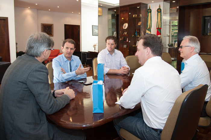 No último dia 9 de dezembro, no Gabinete do Prefeito Municipal de Caxias do Sul, reuniram-se com o prefeito Alceu Barbosa Velho, o reitor Evaldo Antonio Kuiava, o presidente da Câmara da Indústria, Comércio e Serviços de Caxias do Sul e vice-presidente do Conselho Diretor da Fundação Universidade de Caxias do Sul (FUCS), Carlos Heinen, o vice-reitor e pró-reitor de Inovação e Desenvolvimento Tecnológico, Odacir Deonisio Graciolli e o conselheiro da FUCS, Oscar de Azevedo, para dar continuidade às tratativas com vistas à implantação do Parque Científico e Tecnológico - TecnoUCS.