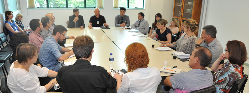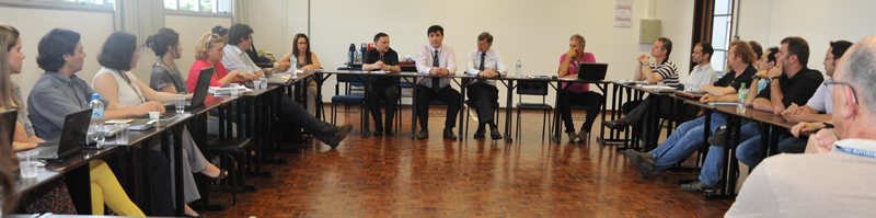 Foi realizada na tarde de hoje (10), a reunião entre a equipe da Reitoria e os gestores do Centro de Ciências Sociais, na Cidade Universitária (foto). O encontro faz parte da agenda da Reitoria e tem como finalidade ouvir os gestores da unidade para recolher avaliações e compartilhar orientações que subsidiem o Planejamento Estratégico para 2015. Ontem (9), a reunião foi no Campus Universitário da Região dos Vinhedos (CARVI), com o conselho do Centro de Ciências Sociais e da Educação.