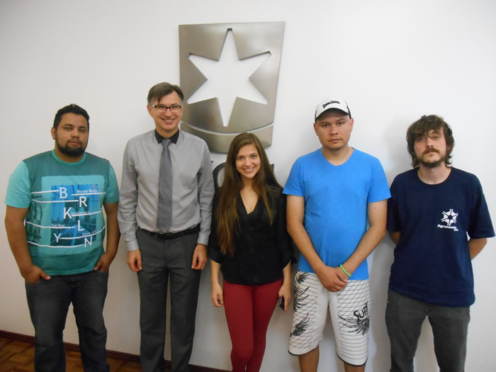 Na foto no Gabinete do Reitor, os estudantes: Eduardo Julianote, Fernanda Busch, Ronaldo Henquer e Peblan Pilan.