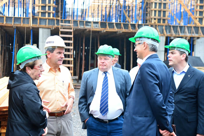 O prefeito Alceu Barbosa Velho, juntamente com a secretária da Saúde, Dilma Tessari, e o secretário de Gestão e Finanças do Município, Gilmar Santa Catharina, visitaram, na manhã desta quinta-feira (11) as obras do Hospital Materno-Infantil. Eles foram acompanhados durante a visita pelo presidente do Conselho Diretor da FUCS, Ambrósio Luiz Bonalume, o reitor Evaldo Kuiava, o diretor executivo da FUCS, Gilberto Chissini, e o diretor-geral do Hospital Geral de Caxias do Sul (HG), Sandro Junqueira. O Hospital Materno-Infantil, que ocupará uma área de 7.533 m², está sendo construído junto à estrutura do HG e resulta de uma parceria entre o Município, a Fundação Universidade de Caxias do Sul e o Governo do Estado.