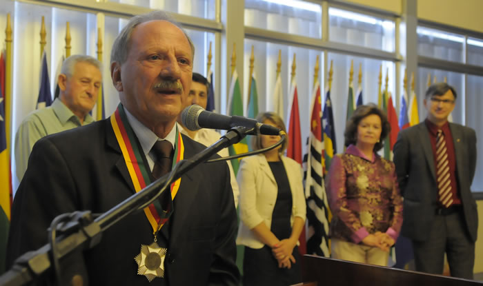 O reitor Evaldo Kuiava prestigiou, na tarde da segunda-feira, dia 22 de dezembro, na Assembleia Legislativa do RS, a entrega da Medalha do Mérito Farroupilha ao professor Roque Maria Bocchese Grazziotin, do Centro de Ciências Humanas e da Educação. A homenagem é considerada a condecoração máxima do legislativo gaúcho e se destina a personalidades que colaboraram para o desenvolvimento econômico, social e cultural do Estado.