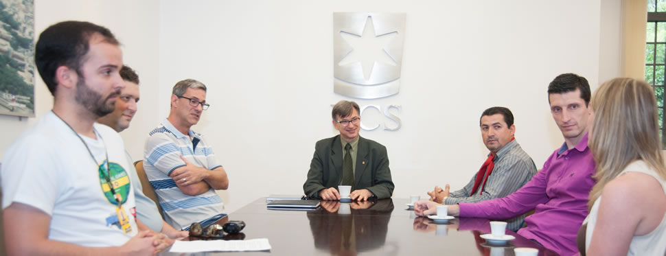 O reitor Evaldo Kuiava recebeu, na tarde de terça-feira (8), a equipe do Laboratório de Criação e Aplicação de Software. O grupo de trabalho atua no desenvolvimento de um jogo digital para a Festa da Uva. A aplicação destinada a aparelhos mobile será oferecida gratuitamente e poderá ser baixada em dispositivos que utilizem plataformas IOS ou Android. [Saiba mais]