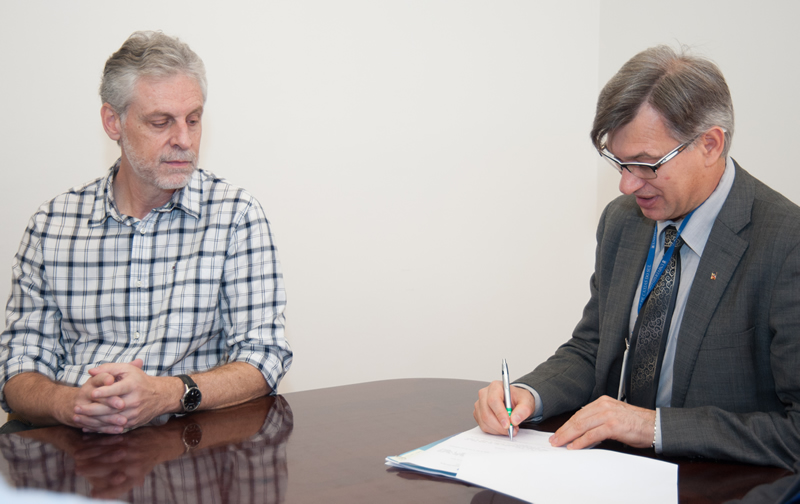 O reitor Evaldo Kuiava e Edson Néspolo, presidente da Comissão da Festa da Uva, assinaram na tarde de hoje (11) acordo de cooperação que prevê a realização de atividades que visam promover, incentivar, divulgar e fortalecer a Festa Nacional da Uva, que se realiza, em Caxias do Sul, de 18 de fevereiro a 6 de março de 2016. [Saiba mais]