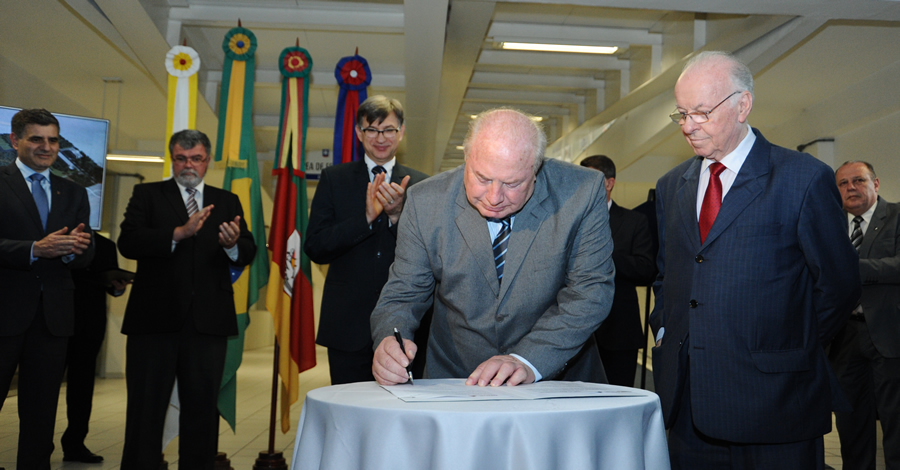 Em evento realizado na tarde desta sexta-feira, 4 de dezembro, no saguão do Bloco 57 do Campus-Sede, o reitor Evaldo Kuiava e o presidente do Conselho Diretor da FUCS, Ambrósio Luiz Bonalume, anunciaram o início das atividades do Parque de Ciência, Tecnologia e Inovação da Universidade de Caxias do Sul. O governador José Ivo Sartori, prefeitos, vice-prefeitos e lideranças políticas dos municípios da região de abrangência da Universidade, e representantes das entidades empresariais, entre elas, Carlos Heinen, presidente da CIC-Caxias do Sul e membro do Conselho Diretor da FUCS, também prestigiaram o evento.