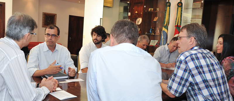 Pela manhã, o professor Carlos Gabriel Gallina Bonone, acompanhado pelo diretor do CCBS, professor Dagoberto Vanoni de Godoy, reuniram-se com o reitor Evaldo Kuiava e o chefe de Gabinete, professor Gelson Leonardo Rech, quando conversaram sobre as diretrizes que devem nortear as ações da Vila Poliesportiva, que é também um importante órgão de apoio aos cursos da Instituição, especialmente aos da área da Saúde.