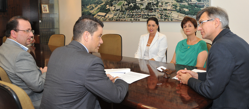 Representantes da empresa Flexibras Tubos Flexíveis Ltda, do grupo TECHNIP Brasil - Engenharia, Instalações e Apoio Marinho S/A, multinacional francesa, estiveram na Cidade Universitária, nesta terça-feira, dia 3 de fevereiro. Pela manhã, eles foram recebidos pelo reitor Evaldo Kuiava e pelo pró-reitor de Inovação e Desenvolvimento Tecnológico, Odacir Deonisio Graciolli. O encontro foi acompanhado pelo coordenador de Projetos, Marcelo Nichele, pela funcionária da Agência de Projetos, Andréia Pedroni De Mori, e pelo professor Frank Missel. Durante a tarde, o professor Missel conduziu os visitantes por uma visita aos laboratórios de Centro de Ciências Exatas e da Tecnologia, para apresentar as pesquisas realizadas pela Universidade na área de interesse da empresa.