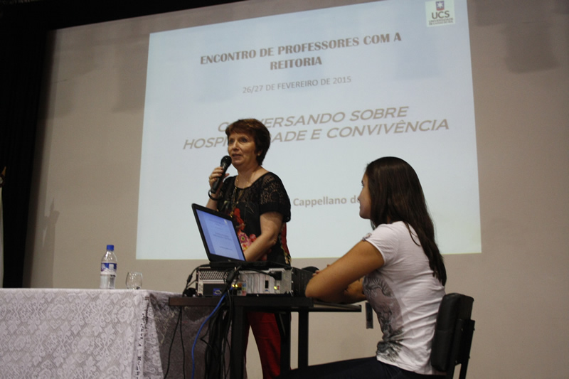 O clima era de volta às aulas e o encontro, planejado pelo Gabinete do Reitor, foi uma oportunidade de refletir sobre o momento atual da Universidade, sobre os desafios futuros e, principalmente, sobre o papel do professor nesse contexto. "A grande fortaleza desta Instituição são as pessoas e com esta equipe de professores o nosso futuro será brilhante". Convidado para fazer a sua saudação, logo no início do encontro, o presidente da Associação dos Docentes (ADUCS), Alexandre Viecelli, manifestou sua confiança na capacidade do corpo docente de preparar os alunos para atuar e interagir positivamente como cidadãos e profissionais. E o vice-reitor, Odacir Deonisio Graciolli, complementou: "Este será um ano de grandes oportunidades e aproveitá-las só depende deste coletivo que está aqui hoje".