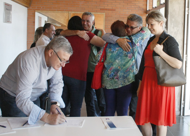 A exemplo do que ocorreu ontem na Cidade Universitária, o encontro entre os professores lotados no CARVI e a Administração Superior da Universidade foi um momento de confraternização que veio reforçar a convivência e o sentimento de pertença à Instituição, aspectos que estão sendo ressaltados pela atual gestão como fatores essenciais na valorização das pessoas que atuam para a qualificação da Instituição.