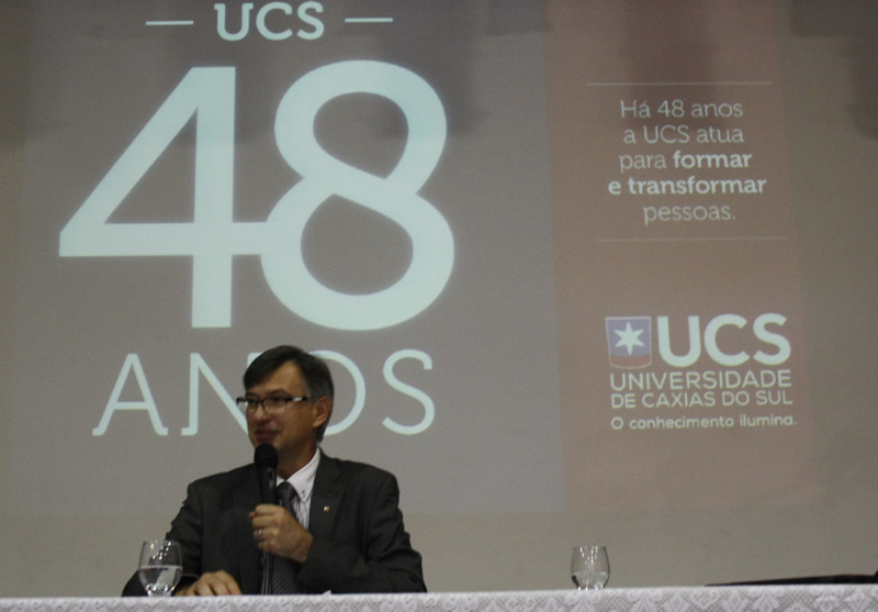 Ao reitor Evaldo Kuiava coube contextualizar o cenário atual no qual a Universidade de Caxias do Sul se movimenta. Para isso, ele destacou as diretrizes institucionais e explicou o caráter comunitário