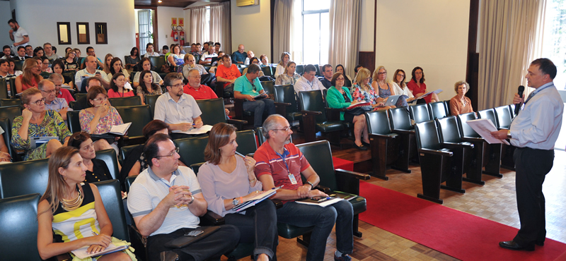 Os professores da UCS reuniram-se na manhã de hoje (26) no UCS Teatro para receber as boas-vindas da Administração Superior da Instituição, confraternizar com os colegas e preparar-se para iniciar mais um período letivo.