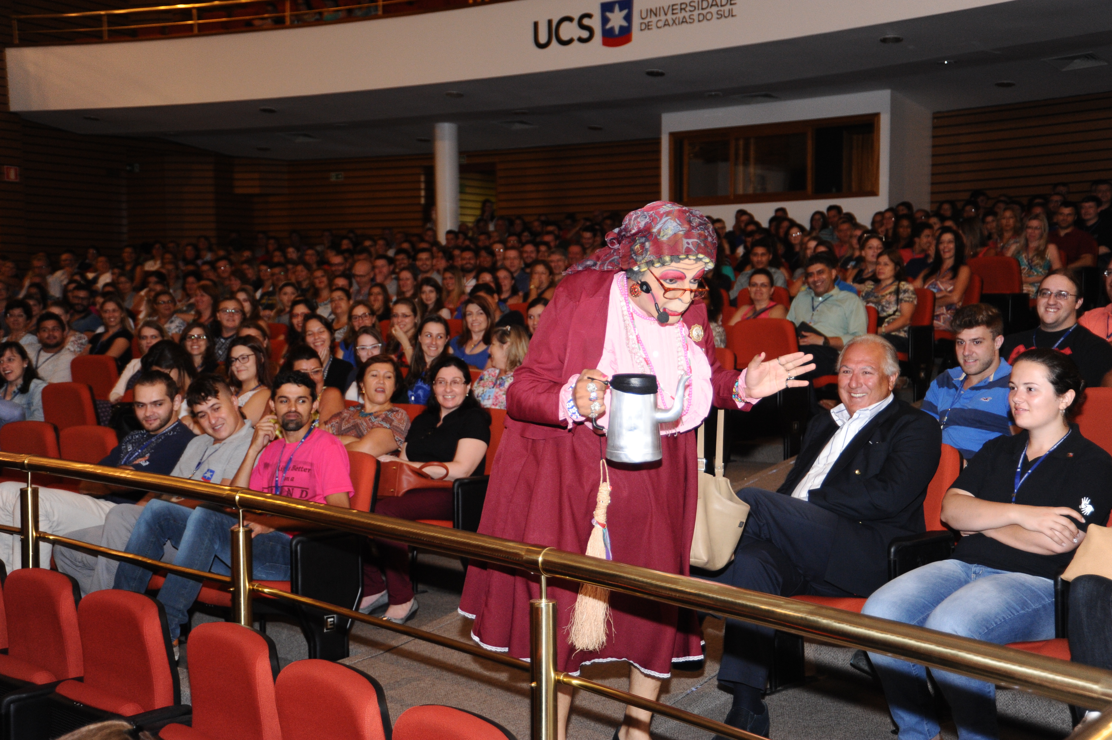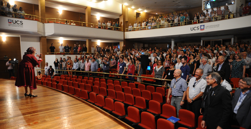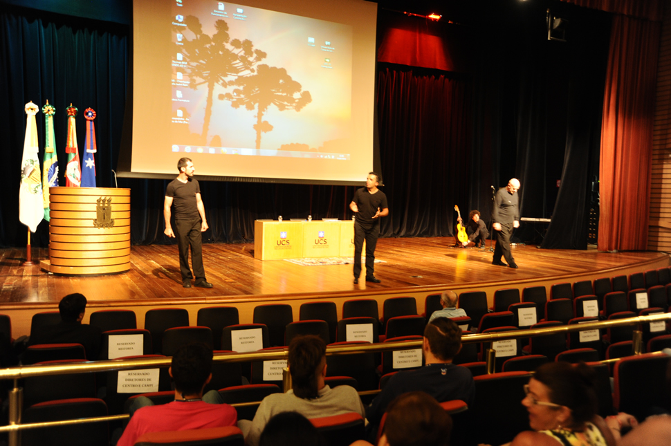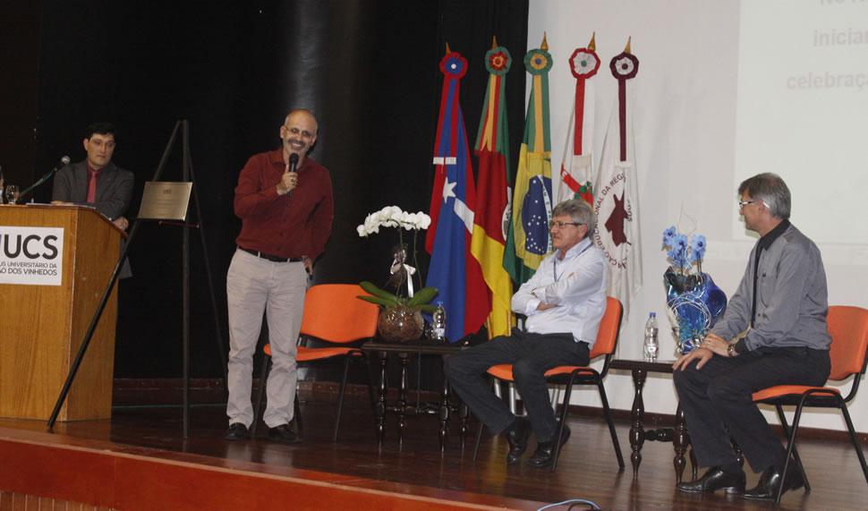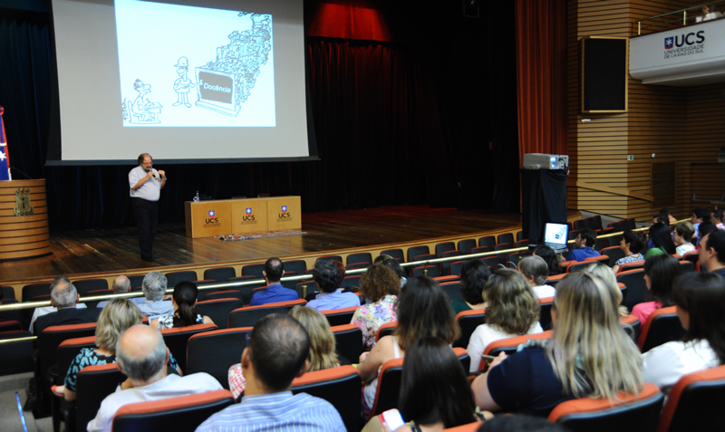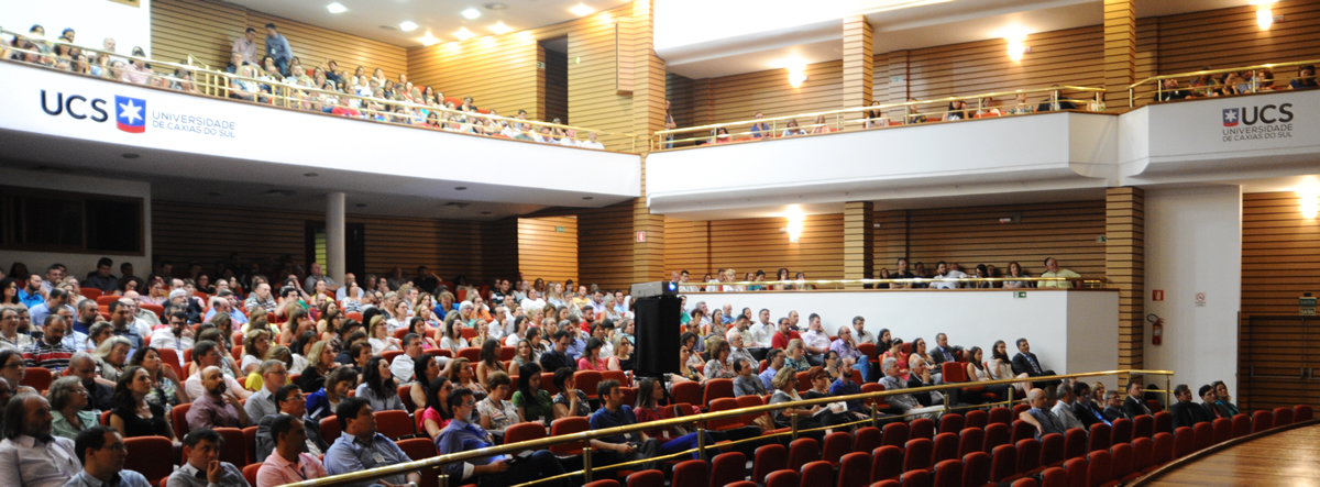 Em Caxias do Sul, o encontro foi no UCS Teatro e os professores recebidos com um café da mahã. Após a sessão de abertura, que teve a participação de Bastiana, personagem do ator e professor da UCS, Davi de Souza, o presidente da Associação dos Docentes da Universidade (ADUCS), Jefferson Panarotto, falou sobre a importância do professor na trajetória da Instituição: 'Somos nós professores que fazemos com que a UCS seja uma instituição de reconhecida excelência acadêmica. Não fosse a nossa atuação, a UCS não teria a grandeza que hoje ela tem".