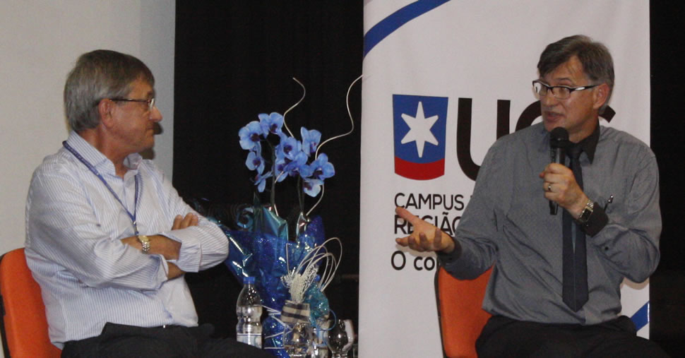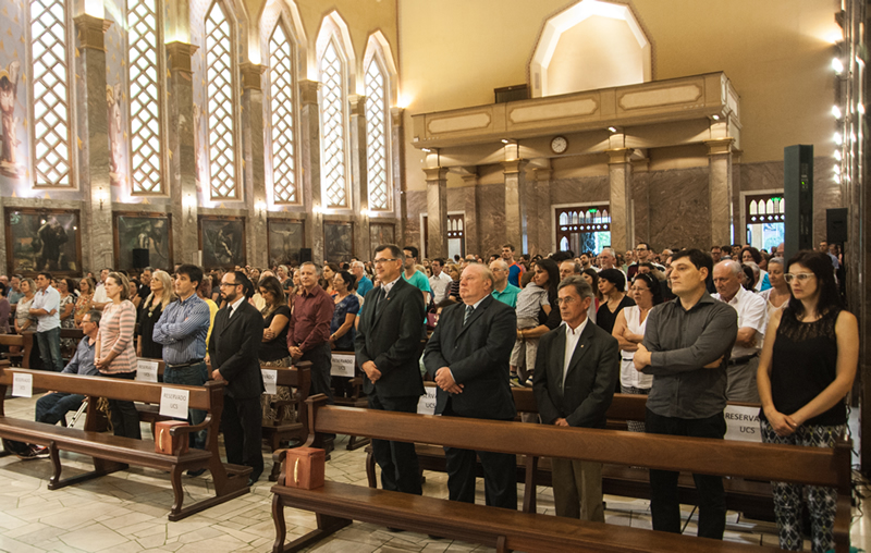 O reitor Evaldo Kuiava e o presidente do Conselho Diretor da Fundação Universidade de Caxias do Sul, professor Ambrósio Luiz Bonalume, assistiram à celebração na companhia de professores e funcionários da Instituição. [Saiba mais]