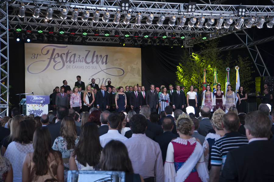 O reitor Evaldo Kuiava e o presidente da FUCS, Ambrósio Luiz Bonalume, representaram a Universidade na cerimônia de abertura da 31ª Festa Nacional da Uva, realizada na tarde desta quinta-feira, dia 18, no Parque de Eventos Mario Bernardino Ramos, em Caxias do Sul.