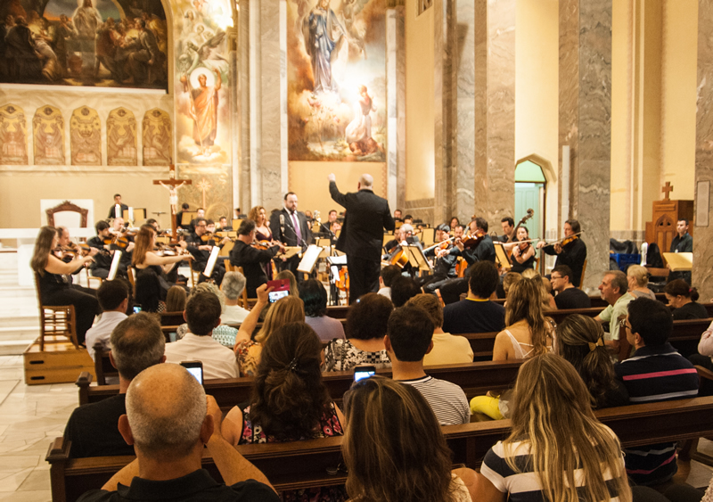 (soprano) e Maicon Cassânego (tenor). Sob a regência do maestro Manfredo Schmiedt, os músicos emocionaram os fiéis com a apresentação de obras clássicas de Bach, Mozart, Schubert e Bizet.