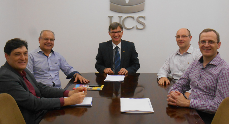 Os dirigentes da ADCE Caxias do Sul, Gabriel Francisco Mognaga (presidente), Juarez Fochesatto (vice-presidente e Tesoureiro) e Luceval Delazzeri (Conselho Consultivo) foram recebidos pelo reitor Evaldo Kuiava e pelo chefe de Gabinete, Gelson Leonardo Rech.