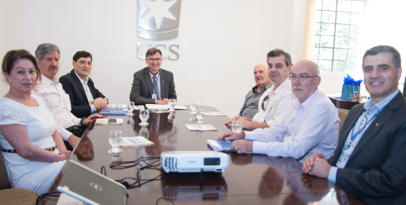 Os integrantes do Conselho Executivo da Câmara de Indústria, Comércio e Serviços de Caxias do Sul (CIC) foram recebidos pela Reitoria da Universidade na manhã desta terça-feira, dia 23. O encontro faz parte das ações que visam estreitar os laços entre a Universidade e as entidades da comunidade. Estavam presentes o presidente, Nelson Fábio Sbabo; o vice-presidente de Indústria, Carlos Zignani; o vice-presidente de Comércio, Ivanir Gasparin; e a vice-presidente de Serviços, Shirlei Omizzol. O reitor Evaldo Kuiava e o pró-reitor Odacir Deonisio Graciolli, juntamente como chefe de Gabinete, Gelson Leonardo Rech, e o assessor de Planejamento, Roberto Boniatti, apresentaram à equipe que assumiu a direção da CIC no início de 2o16, as diretrizes da Universidade e suas principais ações para 2016.